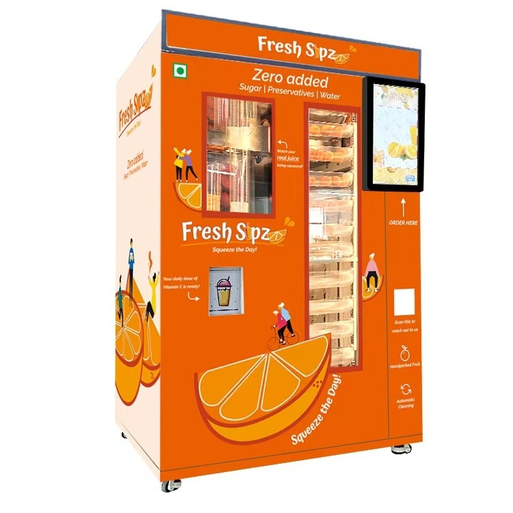 Συνολικά, το μηχάνημα αυτόματης πώλησης χυμού πορτοκαλιού είναι μια ευέλικτη και αξιόπιστη λύση για την παροχή φρέσκου και νόστιμου χυμού πορτοκαλιού κατ' απαίτηση. Το συμπαγές μέγεθος, η στιβαρή κατασκευή, η διαισθητική διεπαφή και το αποτελεσματικό σύστημα λειτουργίας του το καθιστούν κορυφαία επιλογή για επιχειρήσεις και καταστήματα που επιθυμούν να προσφέρουν μια μοναδική και βολική επιλογή ποτού στους πελάτες τους.